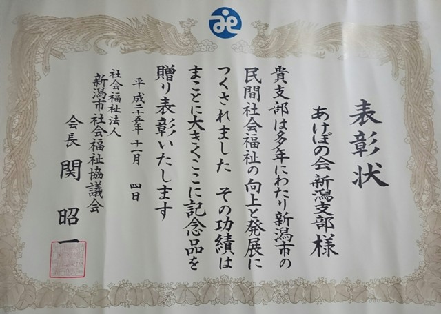 2013年(平成25年)11月4日・新潟市社会福祉協議会賞をいただきました。