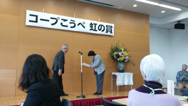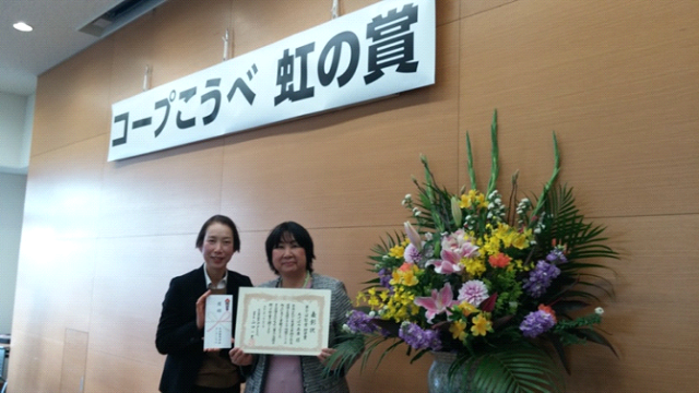 2020年1月31日、コープこうべ住吉事務所大ホールで「コープこうべ虹の賞」の表彰式があり功労章を受賞しました。推薦のあった86件の中から功労賞7団体(10年以上の活動実績)と奨励賞8団体(10年未満の活動実績)が表彰されました。