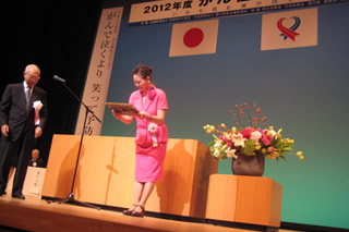 あけぼの会は日本対がん協会の「日本対がん協会団体賞2012」を受賞しました。この賞の対象は「対がん活動に顕著な功績のあった個人及び団体」で「がん征圧のための運動、事業、研究、中でも『予防活動』の第一線で地道な活動を顕彰しますとあります。(日本対がん協会報より)