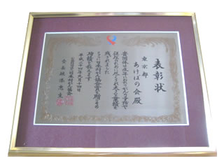 2013年(平成25年)11月20日に保健事業等功労者知事賞「健康増進(がん予防・がん対策推進)部門」を頂きました。