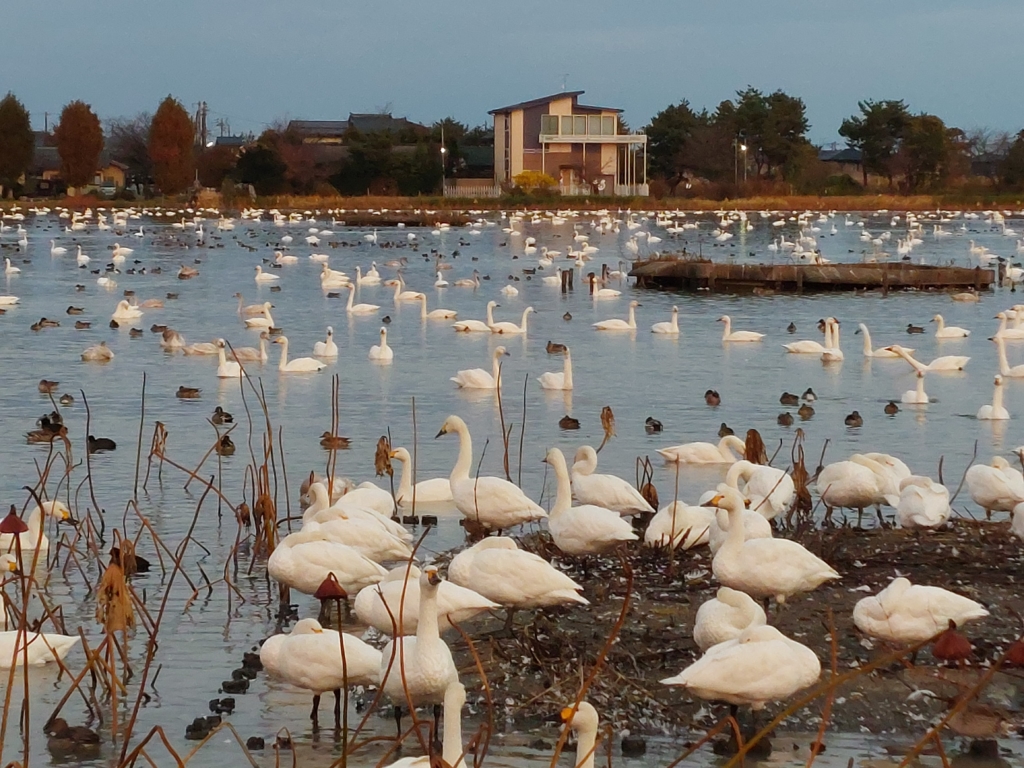 阿賀野市瓢湖(ひょうこ)の白鳥の大群