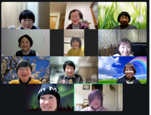 今年最初の〈オンラインあけぼのハウス〉を開催しました。全国から11名(神奈川、静岡、新潟2、岐阜、兵庫、奈良、徳島、山口、福岡2)の参加がありました。初参加の人や2回目の人が多かったのですが、司会進行役の深野さん(深野百合子:事務局長・福岡在住)の穏やかな口調のお話から始まったので、自己紹介の時点ですぐに皆さん打ち解けて、話がしやすい雰囲気になっていました。みなさん自由に自分の思いを話されました。