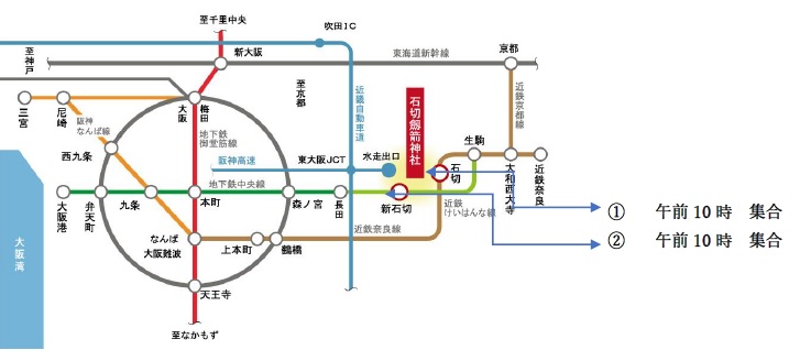 【行程予定】 10:00集合 ①近鉄奈良線「石切駅」改札前 ②地下鉄中央線「新石切駅」改札前