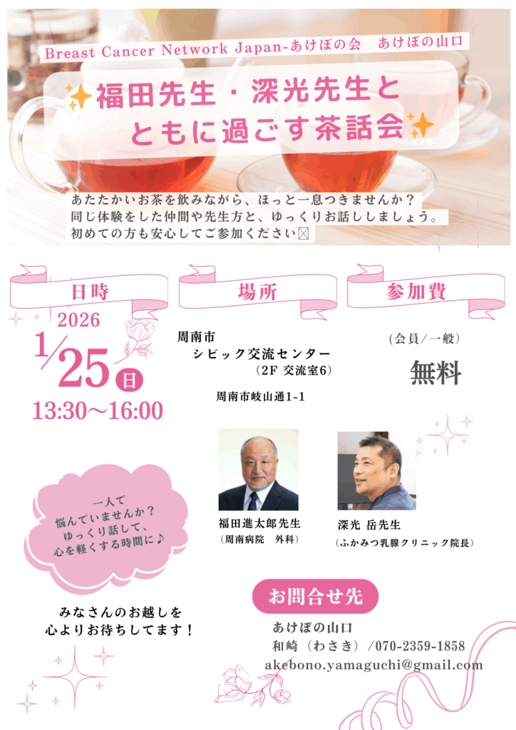福田先生・深光先生とともに過ごす茶話会を開催します。