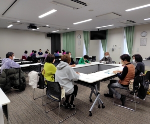 後半の「あけぼのハウス」は、再発転移治療中の方とそうでない方に分かれて、講師の先生方を交えてざっくばらんに話せる時間を持ちました。それぞれが日頃から疑問に思っていること等を質問しました。鰐部氏は滋賀県放射線技師会乳腺画像分科会代表世話に人をされていて、詳しくお話しくださいました。検査の内容や目的を知るとても有意義な講演会とハウスになりました。